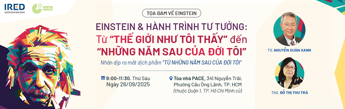 Cảm ơn Quý vị đã quan tâm và đăng ký tham dự Tọa đàm Tọa đàm Sách Hay: EINSTEIN & Hành trình TƯ TƯỞNG diễn ra vào lúc 9:30 - 11:30, Thứ Sáu, ngày 26/09/2025 tại Tòa nhà PACE, 341 Nguyễn Trãi, phường Cầu Ông Lãnh, TP.HCM