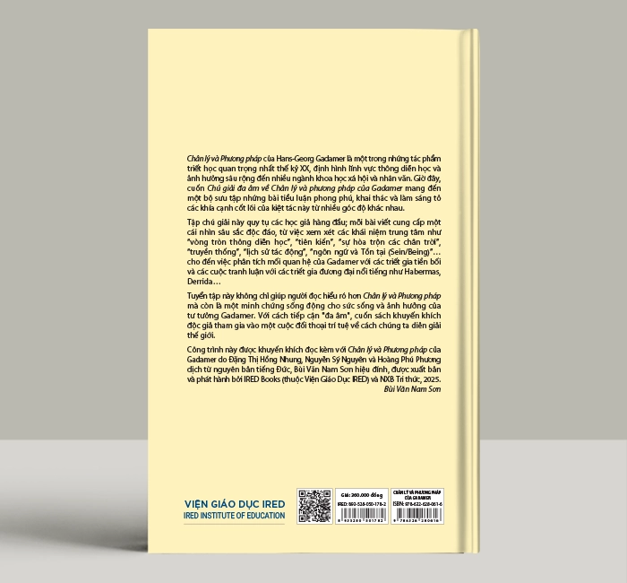 Đặc biệt, cuốn sách “Chú Giải Đa Âm về Chân lý và Phương pháp của Gadamer” được khuyến khích đọc kèm tác phẩm “Chân lý và Phương pháp” của Gadamer do Đặng Thị Hồng Nhung, Nguyễn Sỹ Nguyên và Hoàng Phú Phương dịch từ nguyên bản tiếng Đức, Bùi Văn Nam Sơn hiệu đính, được xuất bản và phát hành bởi IRED Books (thuộc Viện Giáo Dục IRED) và NXB Tri thức, 2025.